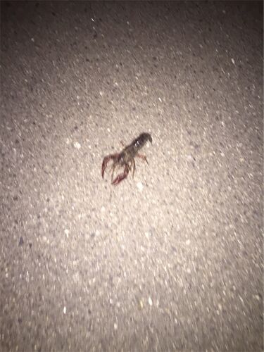 ダンナさんが帰宅中に発見したモノ。 夜道を歩くザリガニ。 ここ数年の内にすっかり住宅街に変わってしまった近所の田畑。 当時、小学生だった子どもたちはよく泥まみれになったり、田んぼにはまっでびしょ濡れになったりしながらもザリガニ釣りを無我夢中で…