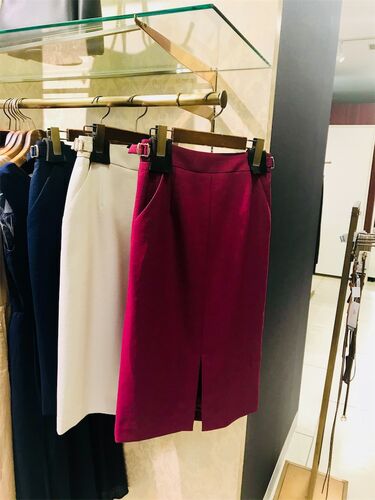スタッフ一押しブランドのスカートがどんどん顔を出す。 前スリット入りの国産スカートは履き心地、シルエット、着丈など星5つ。笑 今期注目のマゼンタピンクとベージュがかなりツボ。