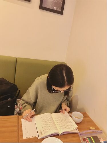 カフェで娘さんと一緒に勉強を。 毎回、カフェではレンズの入っていないメガネをかけて勉強する彼女。 視界に『枠』があると、まわりの情報をシャットダウンして集中しやすいのだとか。 あと、イヤホンをしてピアノ曲を聴きながら勉強するらしい。 うるさく…